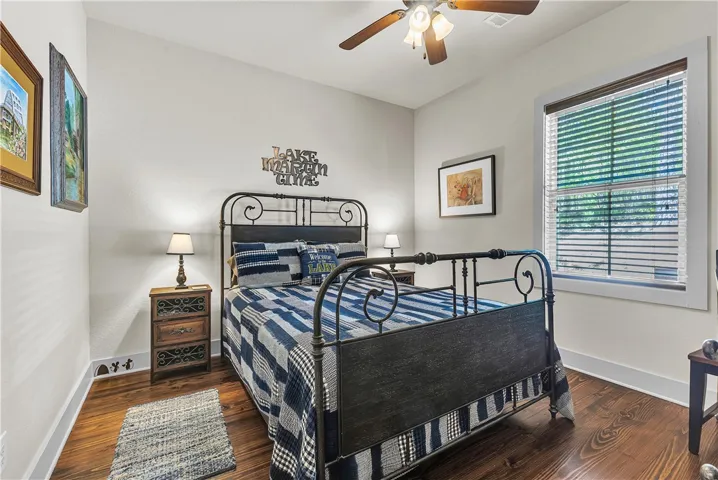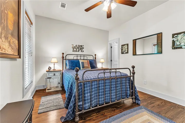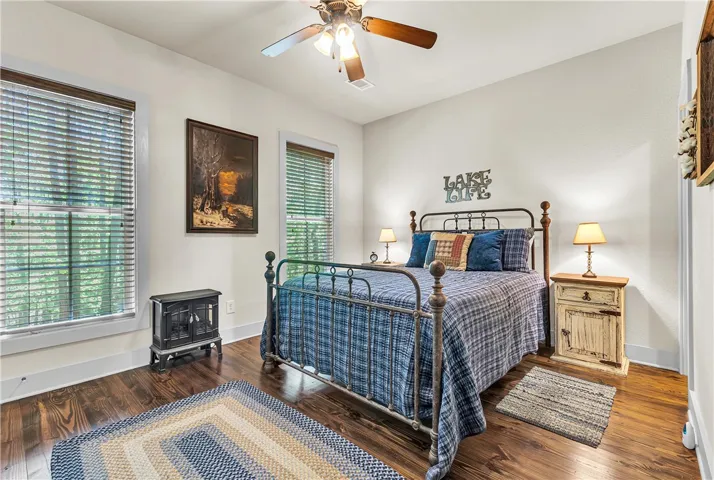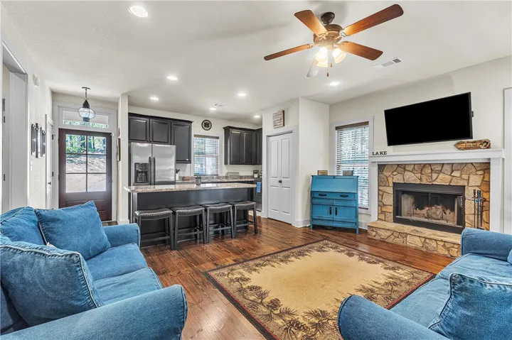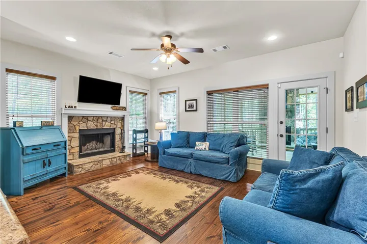 Welcome to your new 2 bedroom/2 bathroom Lake Martin retreat! This cabin is the perfect spot on a wooded lot inside the sought after community of The Village at Lake Martin and is being sold furnished with a golf cart! Enjoy all of the amenities that this community has to offer including a fitness center, two pools, chapel, boat storage, and lawn maintenance. A boat slip is reserved for this property until the end of 2026. The island pool is also available with this slip reservation until the end of 2026. The home is complete with hardwood floors, 2 stone fireplaces, and a screened in porch. Check out the bunk house that has a twin/twin bunk that is super cute! Call today for your showing and be on the lake for summertime! Co-listed with Heather Carr, Realtor, Lake Martin Vibe Realty.