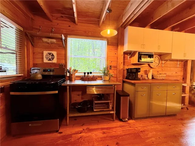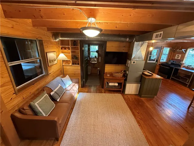 The perfect blend of tranquil retreat or investment opportunity. This beautifully crafted cabin features warm wood interiors, a spacious dining area for gathering, and a cozy atmosphere that guests love. The open-concept living space and fully equipped kitchen provide the perfect home base for wedding guests (3 venues just minutes away), graduation, visiting for game days or just the perfect getaway.
