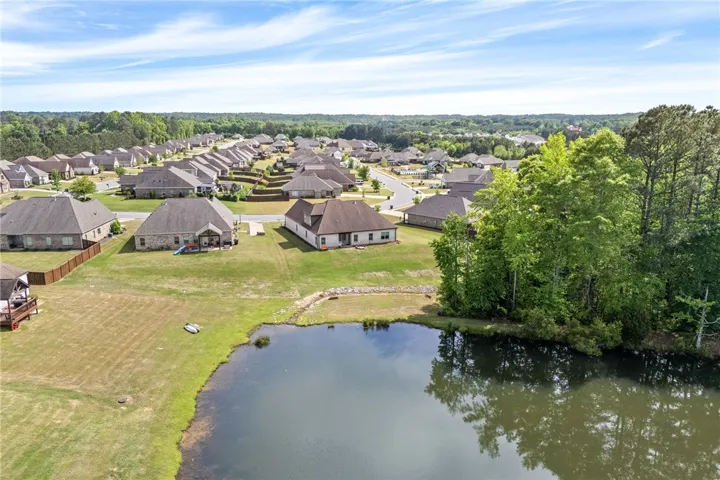 Beautiful, highly sought after Alexandria ll Stone Martin floor plan next to the pond with a functional layout and thoughtful upgrades throughout! The main level offers 4 bedrooms plus a dedicated office, with an open-concept design that flows seamlessly from the foyer into the living, dining, and kitchen spaces, perfect for everyday living and entertaining. The kitchen is a standout with a large center island, walk-in pantry, under-cabinet lighting, and eye-catching herringbone backsplash, all overlooking the spacious great room and breakfast area. The primary suite features pond views, hardwood floors, and a well-appointed en suite bath with separate vanities, a soaking tub, frameless glass shower, and dual walk-in closets. Additional main level bedrooms are well positioned for privacy, with one offering a private bath and others sharing a hall bath. A laundry room and mudroom with built-in storage add to the home’s functionality. Upstairs, you’ll find a versatile bonus room or fifth bedroom with a full bath and easy access to attic storage. To top it off, the seller is offering $10,000 in concessions, making this already impressive home an even better opportunity.
