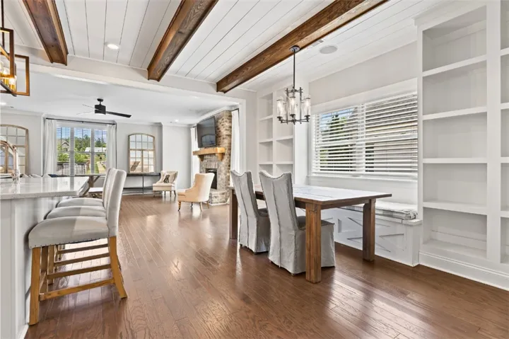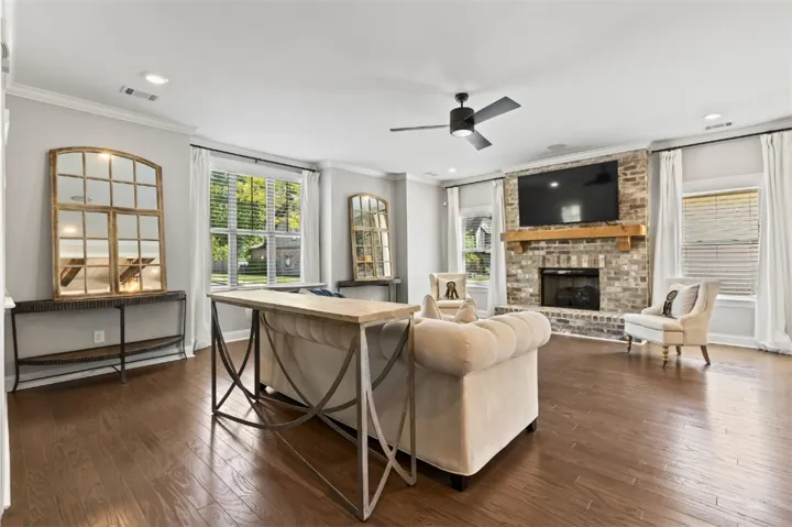 This beautiful, like new furnished home in Woodward Oaks was once the model home and has tons of upgrades and one of the most thoughtfully designed floor plans you’ll find anywhere. The stunning two story foyer with brick accent wall makes a powerful visual impact when you enter the front door. The main level has all the usual common spaces, plus the primary bedroom and a secondary bedroom and bath. Flex spaces include a main level study and a spacious loft upstairs. The detached two car garage is connected to the home by the covered back porch and features slat panel walls for convenient storage of all your home and garden maintenance tools and a mini-split heat and air unit that could be used to make it a comfortable game day or gym space. The back yard is large, flat and fully fenced. All the carpet is brand new and the walls have been freshly painted. It’s fully and attractively furnished and accessorized with drapes, faux wood blinds, washer, dryer, refrigerator and televisions – literally ready to move right in.